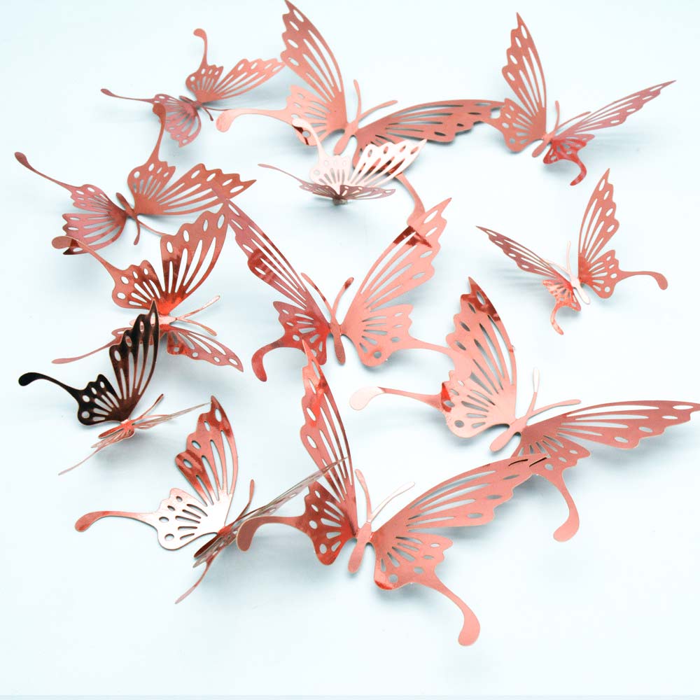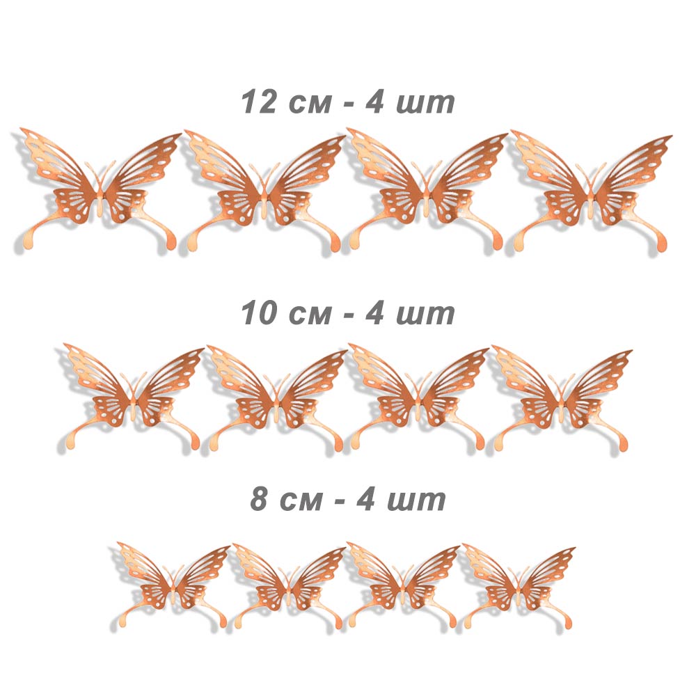 Наклейки Бабочки № 16 бумага металлик 12 шт розовое золото