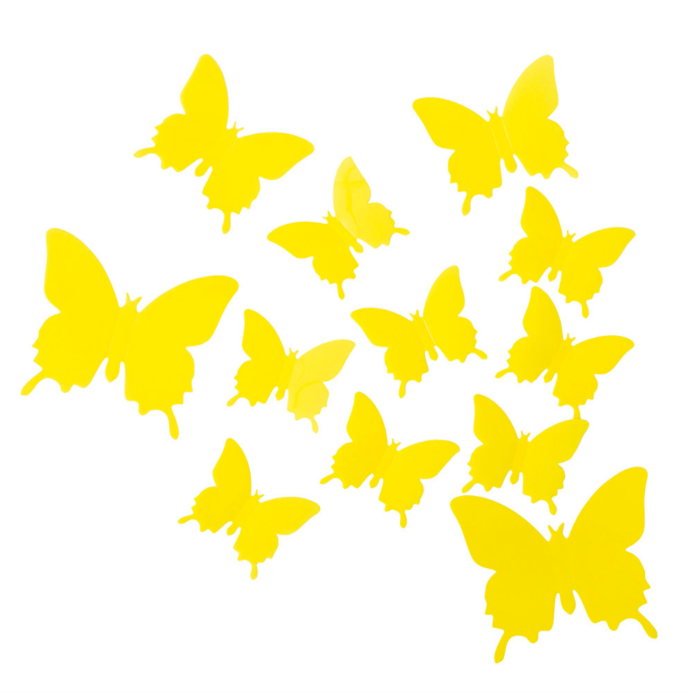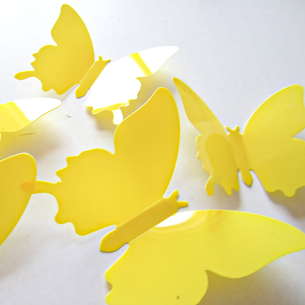 Наклейки Бабочки пластиковые № 8 12 шт матовый желтый