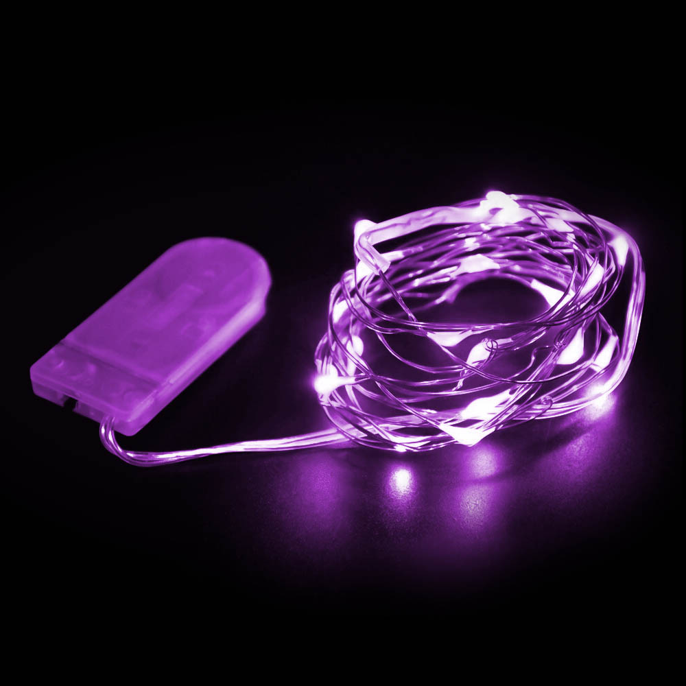 Нить "Роса" серебро, 2 м х 20 диодов, от батареек, фиолетовый