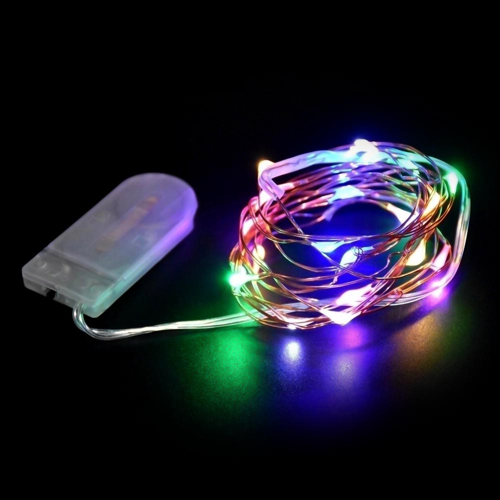 Нить "Роса" серебро, 2 м х 20 диодов, от батареек, разноцветный