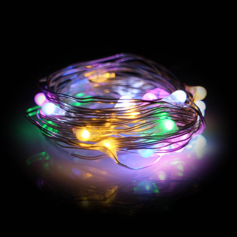 Нить "Роса" серебро, 3 м х 30 диодов, от батареек, разноцветный
