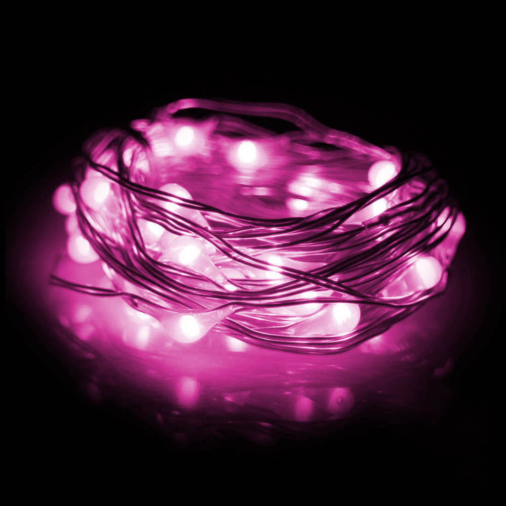 Нить "Роса" серебро, 3 м х 30 диодов, от батареек, розовый