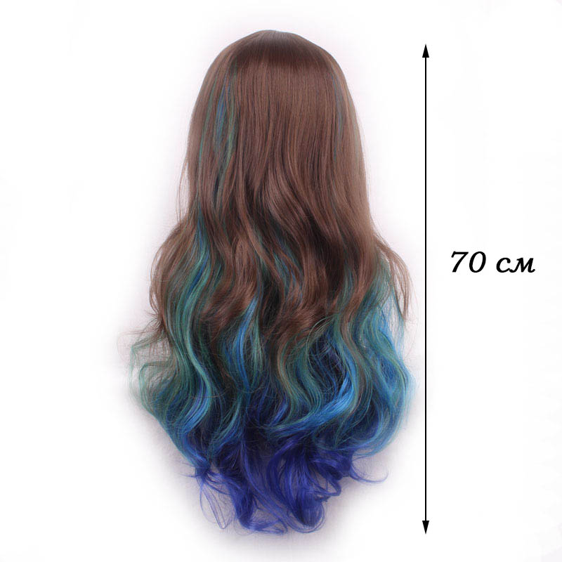 Парик радужный длинный изготовлен из современного искусственного материала.