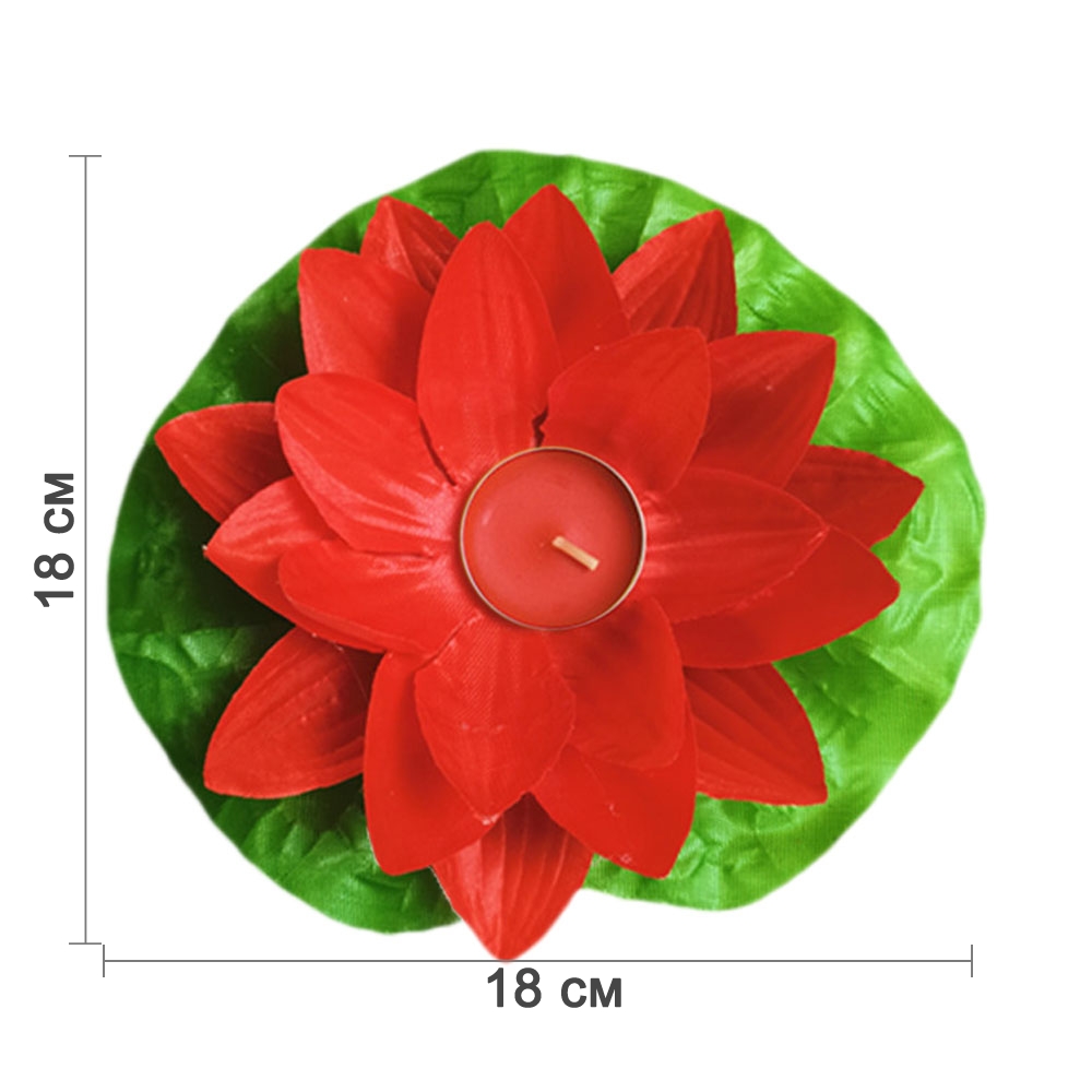Плавающий фонарик из шелка Лотос 18х18 см красный