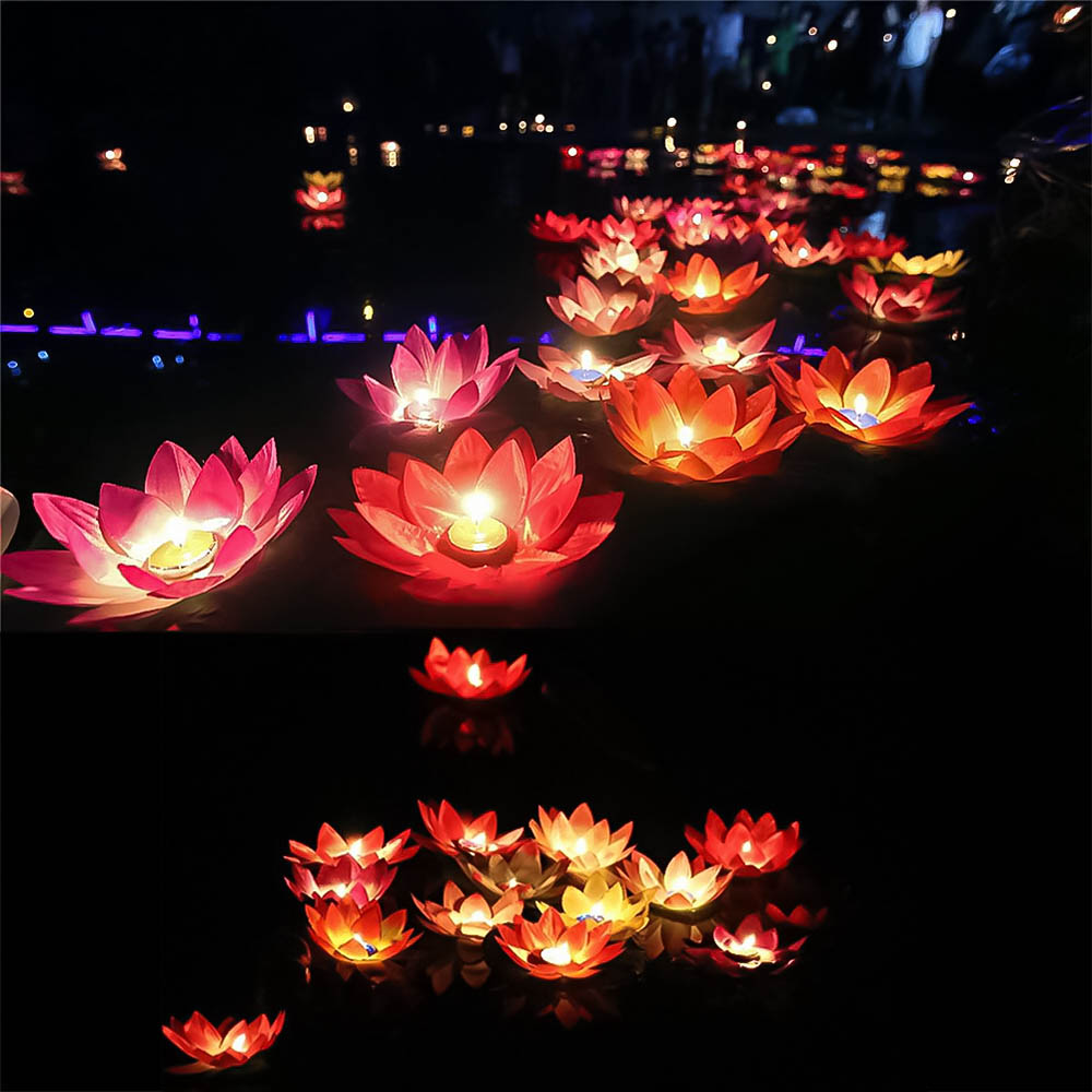 Плавающий фонарик из шелка Лотос 18х18 см лимонный