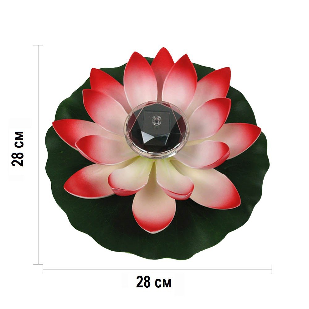 Плавающая Кувшинка с солнечной батареей 28х28 см алый