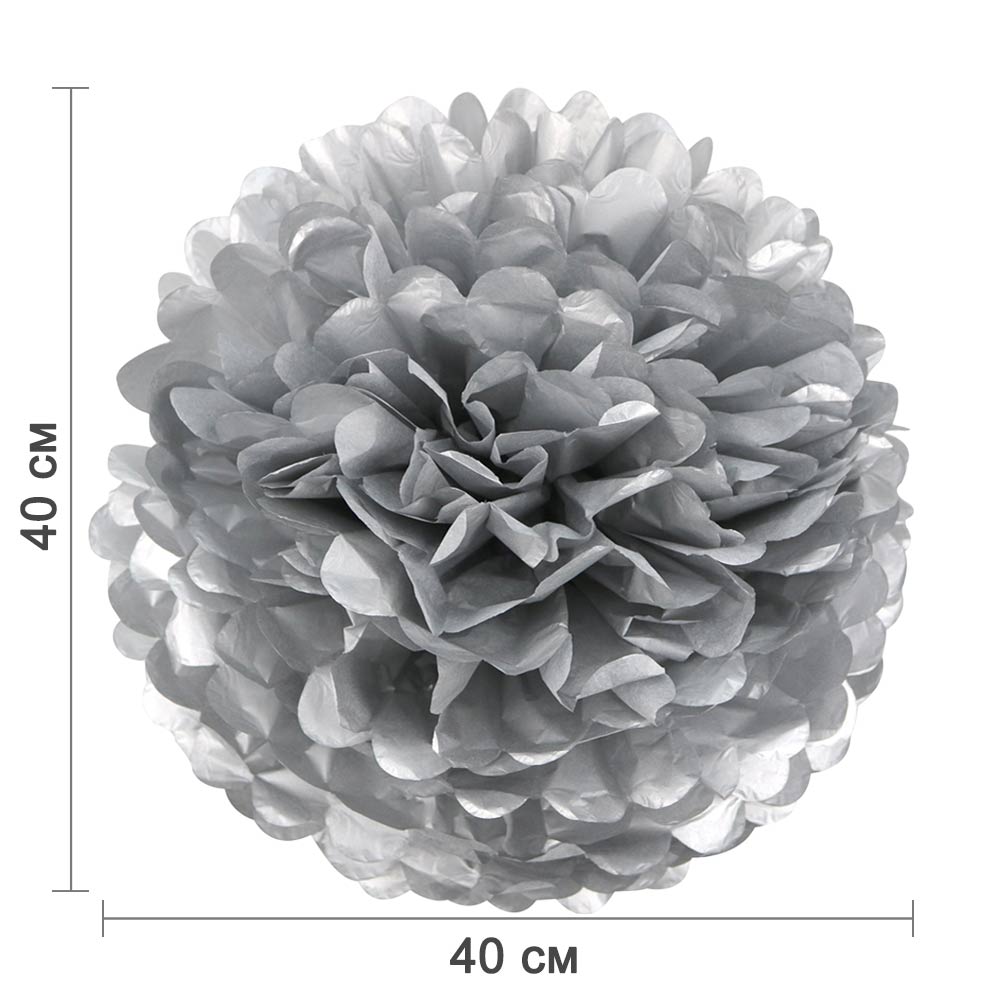Помпон из бумаги 40 см серебро