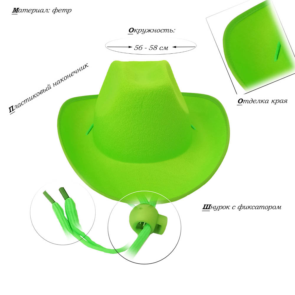 Шляпа ковбойская, салатовый - 1 шт.