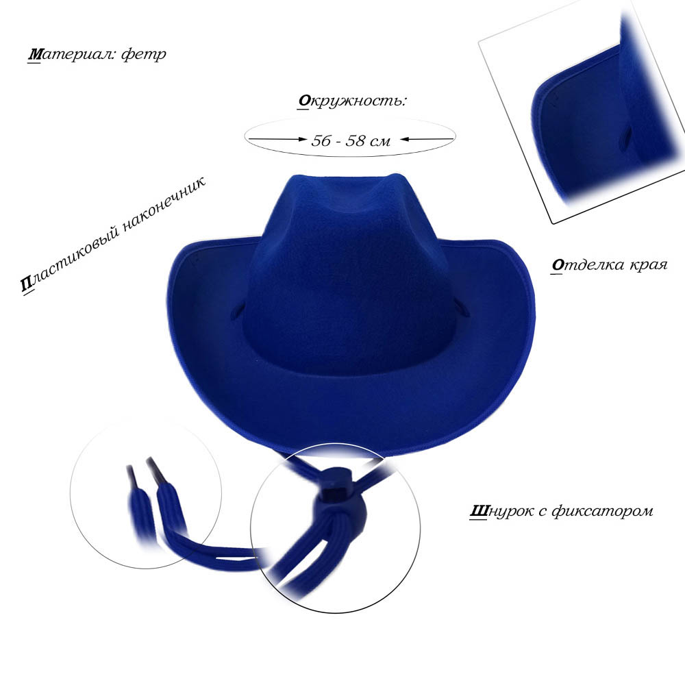 Шляпа ковбойская, синий - 1 шт.
