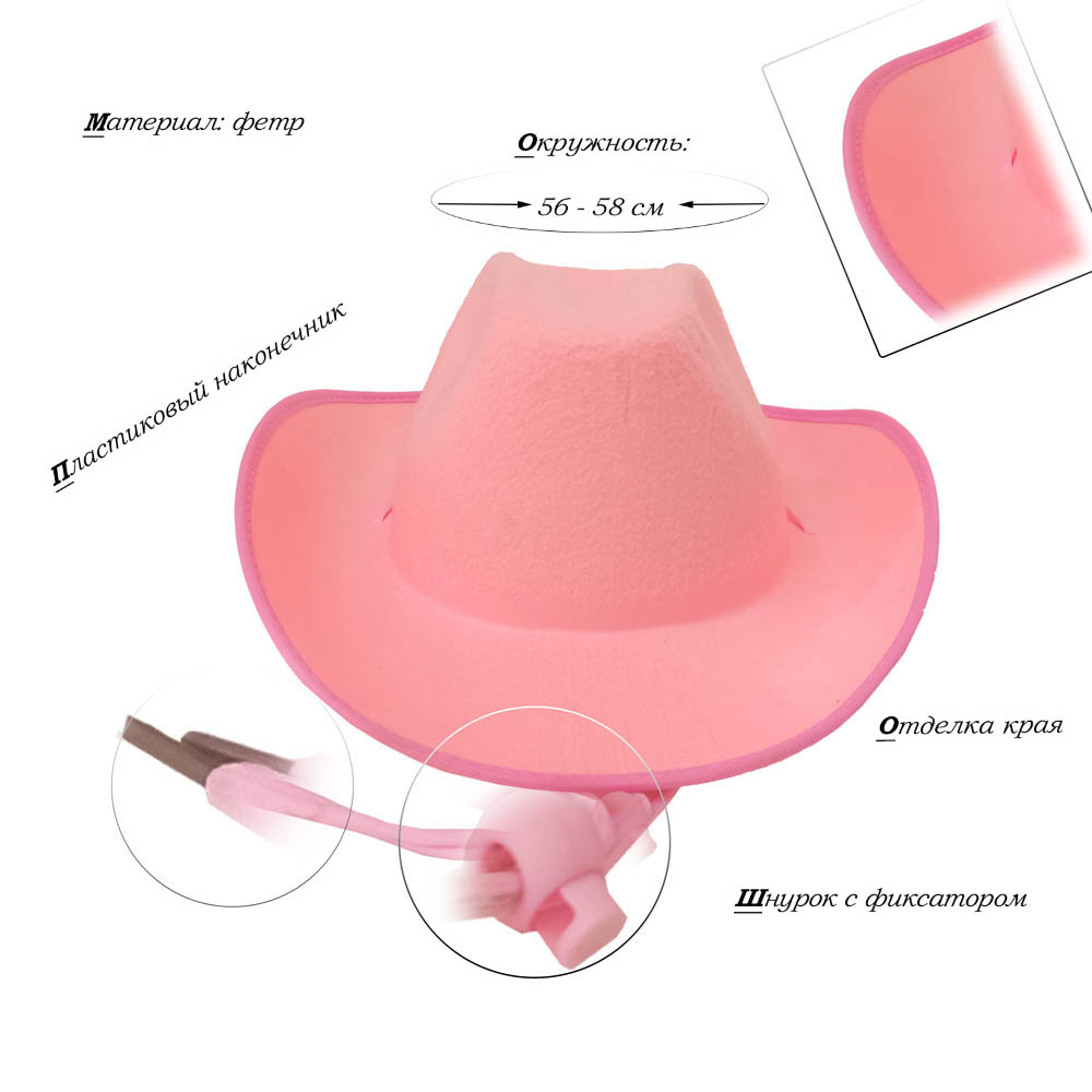 Шляпа ковбойская, св.розовый - 1 шт.
