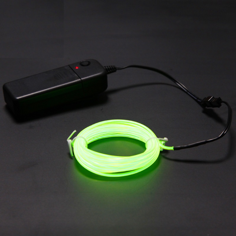 В комплекте с EL проводом, длинной 5 метра,  идет бокс с питанием от батареек, что позволяет его применять где угодно, даже на улице.  Работает от 2-х батареек 2АА (батареек в комплекте нет).