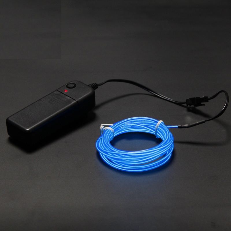 В комплекте с EL проводом, длинной 5 метра,  идет бокс с питанием от батареек, что позволяет его применять где угодно, даже на улице.  Работает от 2-х батареек 2АА (батареек в комплекте нет).