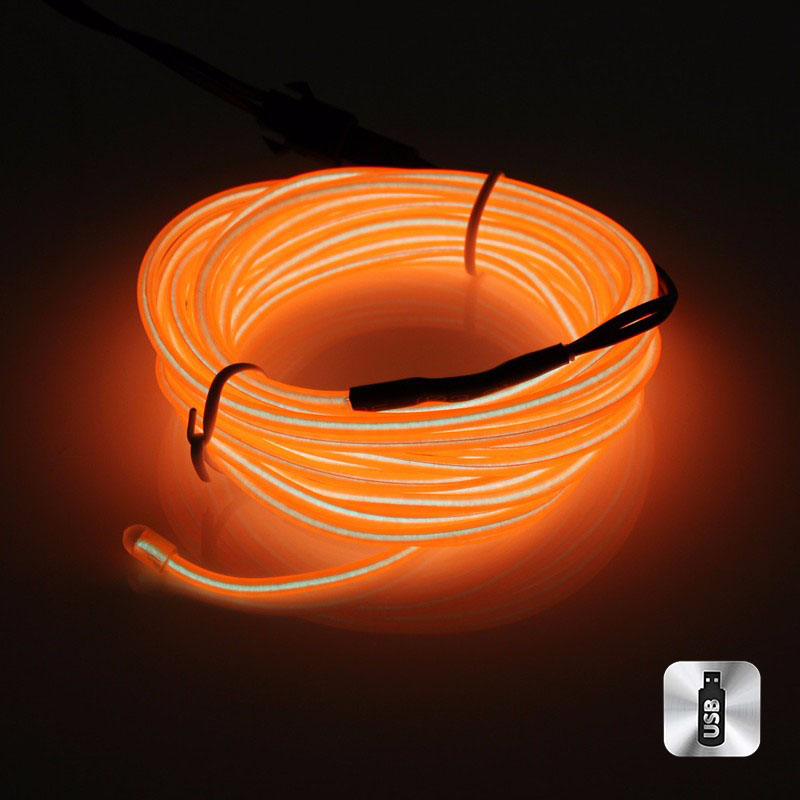 Шнур неоновый светящийся от USB 5 м, оранжевый