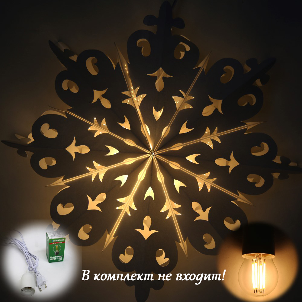В снежинку можно установить подсветку или гирлянду со светодиодными лампами, которые представлены на фото как образец.