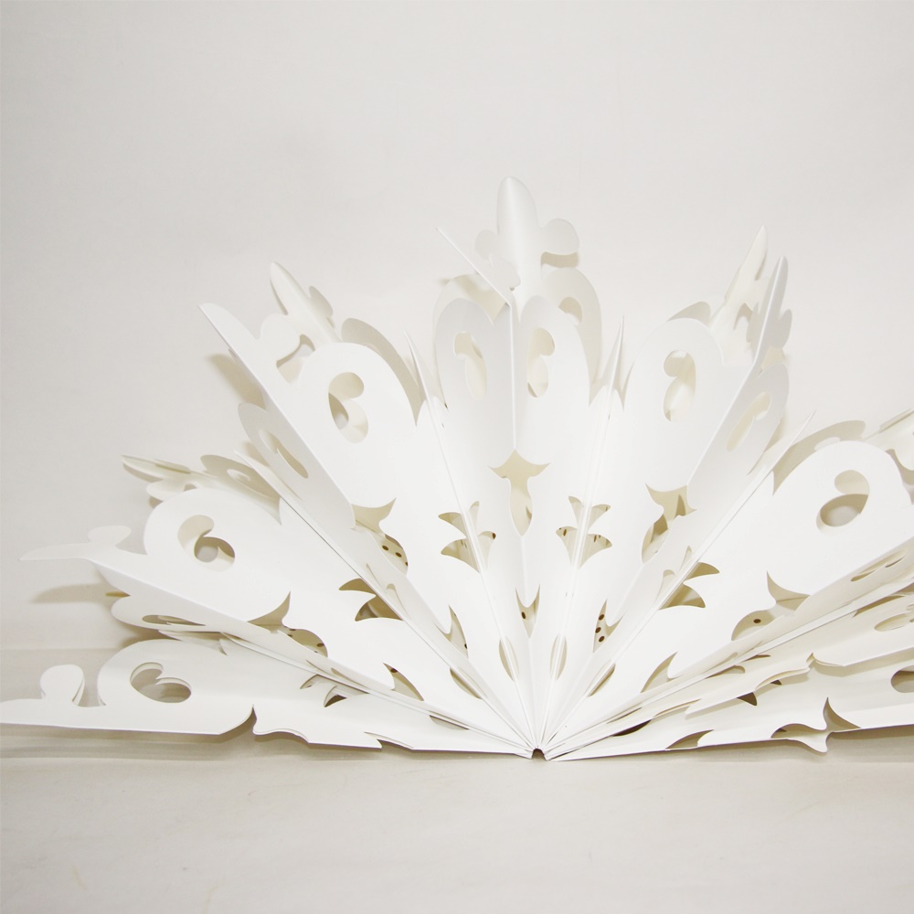 Снежинка на липучках размером 45 см, белого цвета, изготовлена из высококачественной бумаги.