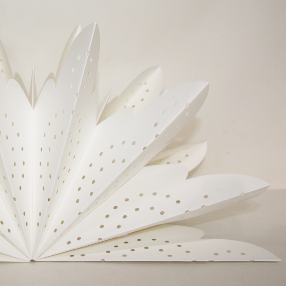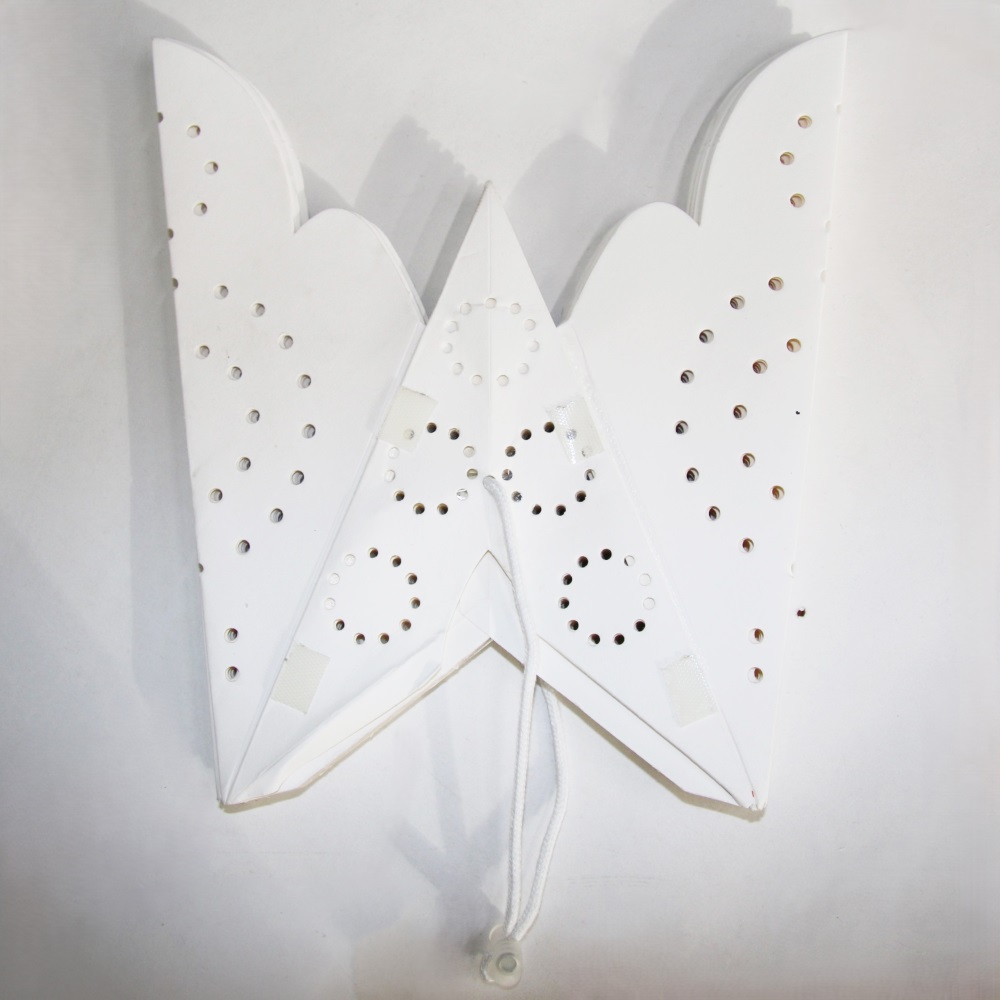 Снежинка на липучках размером 45 см, белого цвета, изготовлена из высококачественной бумаги.