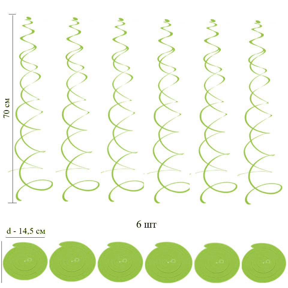 Спираль пластиковая матовая 70см 6шт, светло-зеленый
