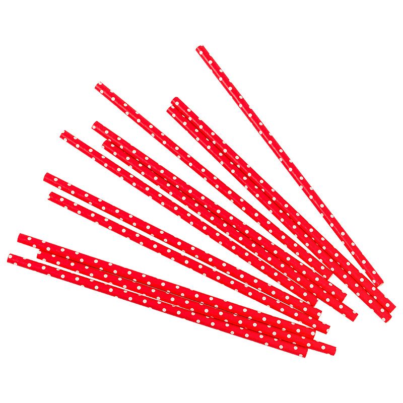 Трубочки для коктейлей,красные в белую точку,12шт