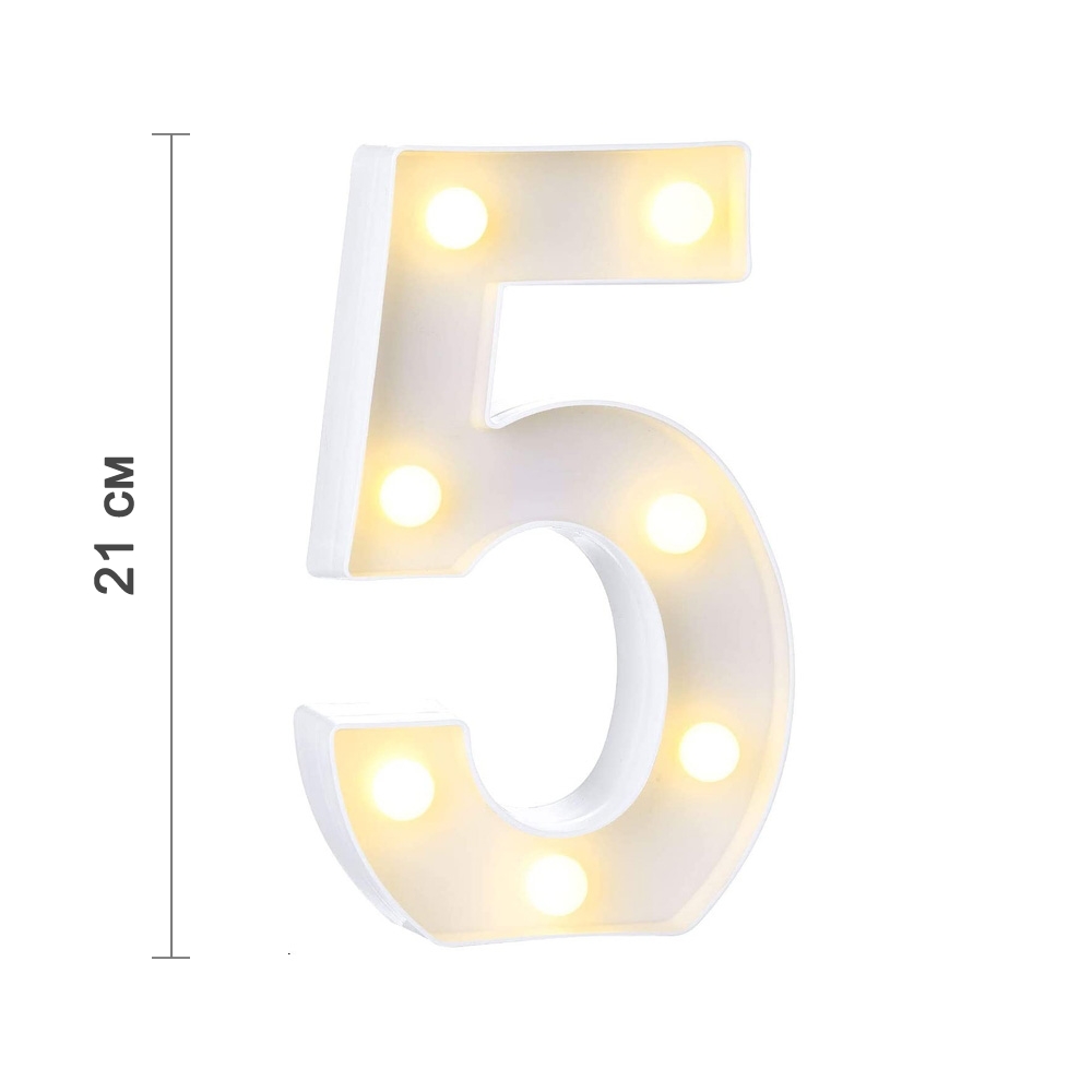 Цифра 5 светодиодная 21 см, от батареек , теплый белый