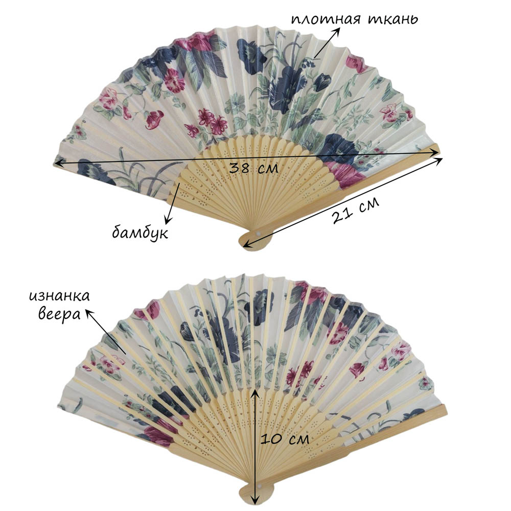 Веера тканевые с цветочным узором 38х21см