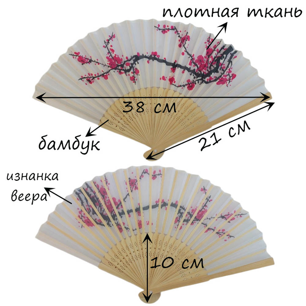 Веер с цветочным узором 38х21 см, №20