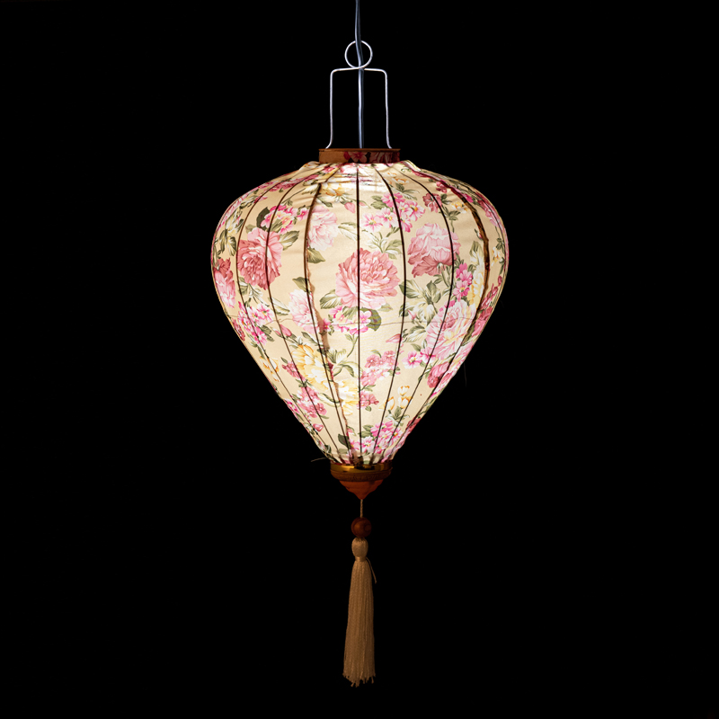 Это традиционные подвесные фонарики ручной работы, изготовленные из шелкового материала с элегантным цветочным узором, которые делают его изысканным и красивым.
