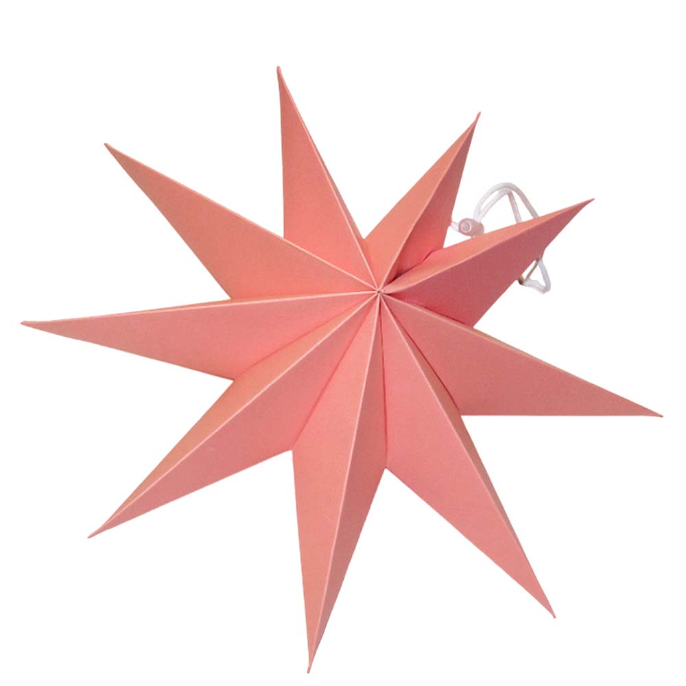 Объёмная декоративная звезда из картона диаметром 30 см с 9 лучами. Оснащена встроенным шнурком для подвешивания. Поставляется в компактном сложенном виде и быстро собирается: специальный шнурок при затягивании придаёт изделию объём и фиксирует форму. После сборки звезда остаётся устойчивой без дополнительных креплений и может использоваться многократно.