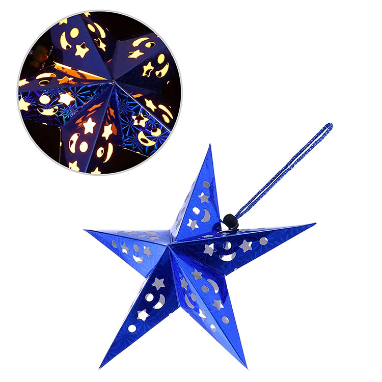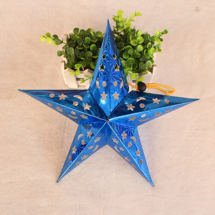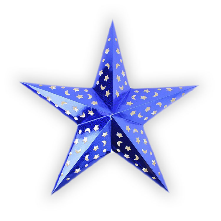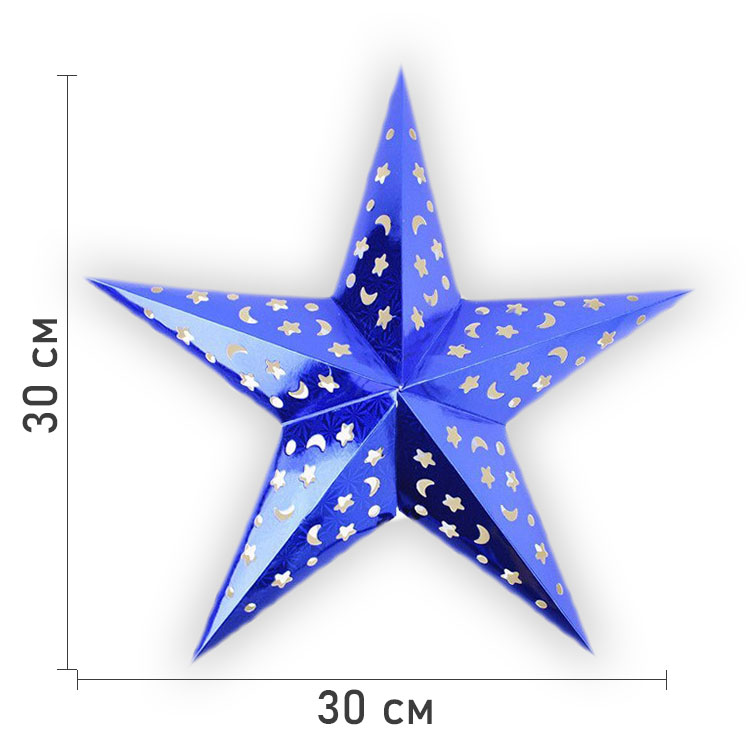 Звезда бумажная 30 см голографическая синяя